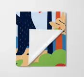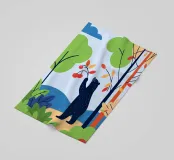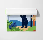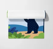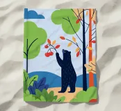 Godetevi la bellezza della natura selvaggia con questa illustrazione di un orso che raccoglie frutta in una tranquilla foresta. I colori vivaci e il design minimalista creano un'atmosfera pacifica e rasserenante.