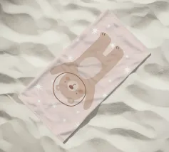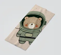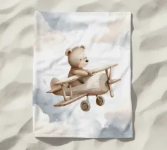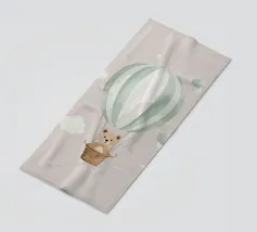 Questo simpatico motivo mostra un allegro orso che fluttua dolcemente nell'aria con un paracadute colorato. I tenui colori beige e pastello in combinazione con i motivi delicati e le nuvole minimaliste conferiscono a questa illustrazione un fascino senza tempo. Un disegno perfetto per gli amanti dei simpatici animali e degli scenari da sogno.Simpatico motivo con un orso fluttuante