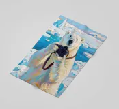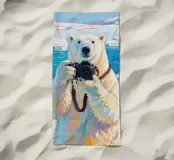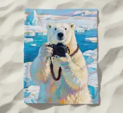 Orso polare che tiene la macchina fotografica con pittura fauvismo stile arte