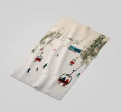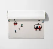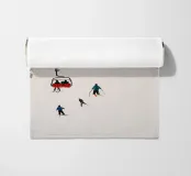Un vivace motivo invernale: gli sciatori scivolano sulla pista mentre gli impianti di risalita rossi fluttuano nel paesaggio innevato. Con i suoi colori chiari e lo stile moderno, questo disegno porta il dinamismo sportivo e il fascino alpino in ogni casa. Perfetto per murales, tazze, cuscini o tessuti: un regalo ideale per gli appassionati di sci e gli amanti dell'inverno.