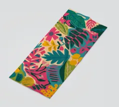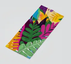 Una lussureggiante scena di giungla incornicia un grappolo d'uva viola, creando una natura morta unica e inaspettata che fonde il fogliame tropicale con la frutta del frutteto in una composizione vibrante.