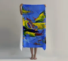 Il dipinto è colorato, con un mix di rosso, blu, giallo e verde. I toni accesi creano un'atmosfera gioiosa ed energica che cattura immediatamente l'attenzione.