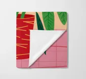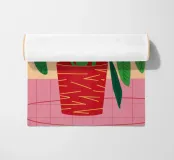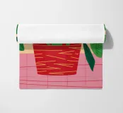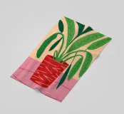 Un'illustrazione semplice ma vivace di una pianta d'appartamento verde e rigogliosa in un vaso rosso brillante e strutturato. I colori vivaci e lo stile pulito ne fanno un pezzo perfetto di arte botanica moderna.