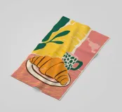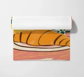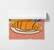Un'affascinante natura morta di un croissant fresco su un piatto, abbinato a forme botaniche astratte su uno sfondo rosa. L'opera celebra il piacere semplice e delizioso di una colazione in stile parigino.