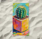 Piccolo cactus in vaso a forma di cubo con pittura fauvismo stile arte