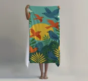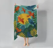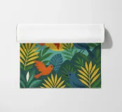 Immergetevi in un'atmosfera tropicale con questo poster Uccelli e sole turchese. Uccelli colorati volano sopra un sole splendente, in un contesto di piante rigogliose. Un poster vintage perfetto per dare un'atmosfera fresca ed esotica alla vostra casa.