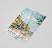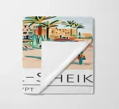 Questo vivace poster in stile retrò cattura il fascino solare della spiaggia di Sharm El-Sheikh. L'opera d'arte presenta una scena vivace con una splendida architettura costiera, palme lussureggianti e persone che si rilassano sulla spiaggia. Il mare turchese e le spiagge sabbiose sono resi con uno stile artistico dinamico e colorato, che evoca un senso di calore e di beatitudine vacanziera. La palette di colori caldi e invitanti e le pennellate fluide conferiscono all'immagine un'atmosfera unica e accattivante. Questo poster digitale di alta qualità (7000x5000 pixel, 300 dpi) è un'opera d'arte di prima qualità che celebra l'atmosfera serena e bella di questa spiaggia.
