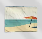 Celebrate il calore dell'estate con questo poster Vintage Beach. Il suo stile elegante e retrò è caratterizzato da un ombrellone, sabbia dorata e mare turchese. Una decorazione estiva elegante e minimalista, ideale per gli amanti del mare.