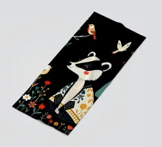 Godetevi una vivace illustrazione naturalistica con un procione in una scena autunnale con foglie che cadono.