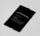 Add a dash of wit to your space with our hilarious "Procrastinating" typography art print. This clever design presents a humorous dictionary-style definition of procrastination, focusing on the universal tendency to snack when avoiding tasks. The crisp white serif lettering pops against a sleek black background, creating a sophisticated yet playful aesthetic. Perfect for offices, dorm rooms, or any area where you need a reminder to stay on task (or justify your snack breaks), this versatile artwork brings a smile to procrastinators and go-getters alike. Ideal gift for students, professionals