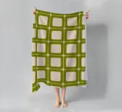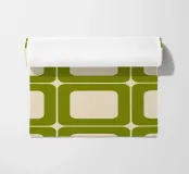 Questo disegno presenta quadrati verdi retrò con un'estetica di chiara ispirazione anni '60. Il suo fresco layout geometrico aggiunge un sottile tocco di colore, pur rimanendo pulito e moderno. Ideale per un arredamento eclettico e moderno.
