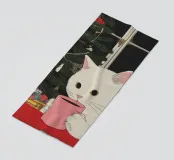 Questa bevanda nella tazza da caffè è vino caldo? Questa bevanda sembra molto invitante, ma fate in fretta o questo simpatico ed elegante gatto bianco giapponese berrà tutto il vino in un sorso, per celebrare questa accogliente notte invernale.