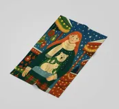 Una collezione di opere d'arte colorate a tema natalizio esposte con allegria.