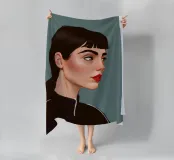 Il ritratto intenso e suggestivo di una donna con capelli scuri, occhi penetranti e un audace rossetto rosso รจ reso in uno stile pulito, moderno e realistico, che cattura uno sguardo di tranquilla forza e sicurezza.