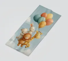 Una magica illustrazione verticale che cattura un momento stravagante, mentre un gruppo di coniglietti si prepara al lancio di un razzo alimentato da un palloncino. Ambientata su una piattaforma di legno sotto un cielo da sogno, la scena fonde ingegneria, fantasia e lavoro di squadra in toni pastello. Perfetto per la stanza di un bambino o di chiunque sogni l'esplorazione e l'avventura con un fascino morbido e pittorico.