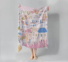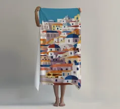 Poster minimalista in bianco e blu di Santorini, in Grecia, con l'iconica architettura cicladica con chiese a cupola, scale a chiocciola e fascino mediterraneo. Questa opera d'arte serena ed elegante cattura la bellezza senza tempo delle isole greche ed è perfetta per gli amanti dei viaggi e dell'arredamento costiero.