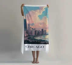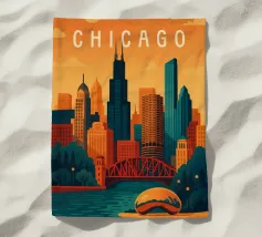 Questo poster mostra l'imponente skyline di Chicago nel caratteristico stile lino print, con la dominante Willis Tower al centro e il lago Michigan in primo piano. Perfetto per gli amanti dell'architettura americana, dell'estetica dello skyline e dei classici poster cittadini. Ideale per soggiorni, uffici o pareti creative dal sapore urbano.