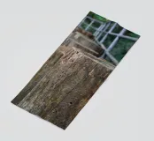 Un sentiero rustico in legno si estende attraverso la passeggiata a baldacchino di un giardino botanico, sostenuto da spessi pali di legno invecchiato che rivelano il passare del tempo. Le trame naturali e le venature sono chiaramente visibili, mentre una semplice ringhiera metallica guida il percorso.