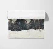 Un dipinto invernale d'atmosfera che cattura la semplice bellezza della natura. Abeti rossi scuri si stagliano contro un cielo grigio e soffice, mentre il terreno riposa sotto una spessa coltre di neve. La struttura fine delle pennellate conferisce al dipinto profondità e un'atmosfera tranquilla. Questa scena ricorda la forza tranquilla dell'inverno, quei momenti in cui il mondo si riposa.