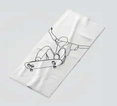 Uno scheletro dei cartoni animati che indossa un casco si muove allegramente sullo skateboard, mostrando il suo lato giocoso. Lo skateboard presenta un caratteristico motivo a scacchi bianchi e neri.