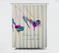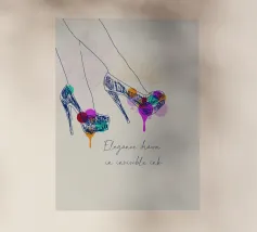 Uno schizzo minimalista ma espressivo di eleganti tacchi alti abbinati ad audaci gocce di colore. Questa opera d'arte di tendenza celebra lo stile femminile con un tocco astratto.