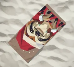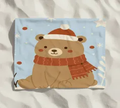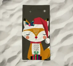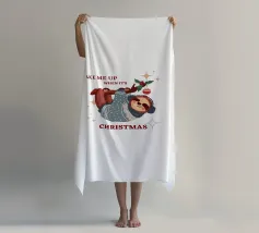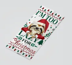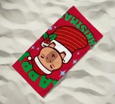 Un simpatico riccio con un cappello da Babbo Natale siede allegramente su una slitta ornata di agrifoglio. Sotto la slitta, la scritta "SLEDGEHOG" aggiunge un tocco giocoso al tema della festa.