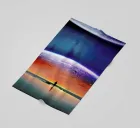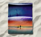 In this vibrant digital illustration, the man stands in awe beneath the cosmic spectacle of a colorful planet eclipse. The planet, named Solaris, looms large against the dark expanse of space, its vivid hues swirling in a surreal display of color and light. The man, silhouetted against this breathtaking view, is lost in the beauty of the moment, his gaze fixed on the celestial wonder unfolding before him. The scene captures the quiet awe and mystery of space, as the planet’s kaleidoscope of colors contrasts with the vast, infinite blackness surrounding it.