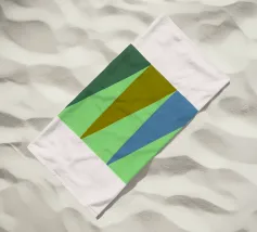 Diverse forme geometriche dai colori tenui sono sovrapposte a uno sfondo chiaro. Un rettangolo color oliva opaco domina una parte della tela, sovrapponendosi parzialmente a una forma giallo pallido, con un accenno di blu che fa capolino da sotto.