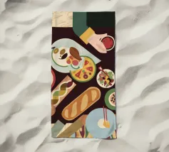Una vista dall'alto di mani che condividono un grande piatto di spaghetti su una tovaglia a scacchi rossi e bianchi. La scena è una rappresentazione classica, gioiosa e un po' caotica di un pasto comune italiano.