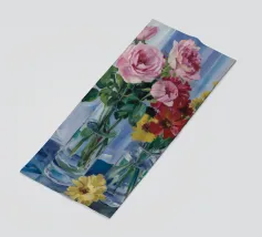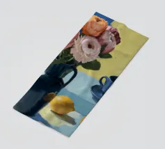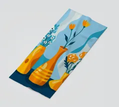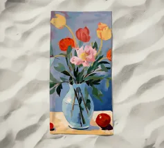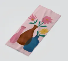Elegante poster di natura morta con vasi in ceramica dai toni pastello riempiti di fiori sbocciati rosa e arancioni, su un morbido sfondo blu. Perfetto per aggiungere un tocco artistico e sereno agli interni moderni. Ideale per gli amanti dell'arte e dell'arredamento in cerca di ispirazione floreale.