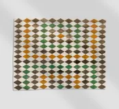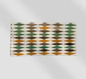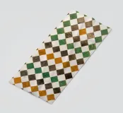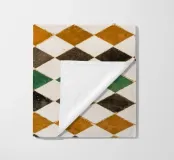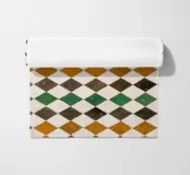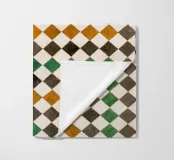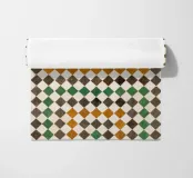 Piastrelle quadrate in Marocco. Piastrelle in nero, arancione, verde.
