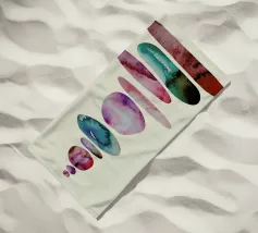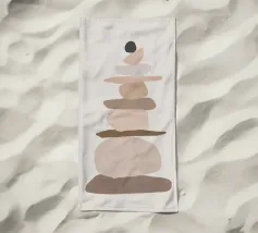 Una serie di forme ovali impilate, di dimensioni e tonalità diverse, formano una torre. I colori passano dolcemente da toni scuri in basso a toni più chiari in alto, culminando in un piccolo cerchio scuro.