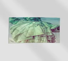 Questa affascinante fotografia in bianco e nero mostra l'iconica Statua della Libertà contro l'imponente skyline di Manhattan, simbolo di libertà e democrazia. Con un design elegante, l'opera d'arte combina l'estetica moderna con la bellezza senza tempo di questo famoso simbolo e aggiunge un tocco di raffinatezza a qualsiasi ambiente.