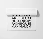 Questo design mostra nove stili abitativi in varietà tipografica: dal minimalismo al massimalismo, dal boho all'art déco. Ideale per gli appassionati di interni, gli amanti dell'architettura e gli spazi creativi con stile. Una dichiarazione di diversità del design.