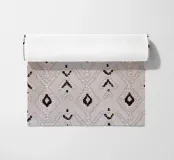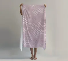 Dieser elegante, orientalische Weberei Illustration vereint moderne und vintage Elemente mit symmetrischen Rautenmuster in sanften Pastell- und Cremefarben, perfekt für einen Boho-Stil.