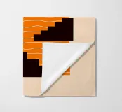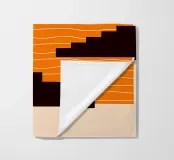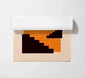 A minimalist composition combining bold stair-like shapes with a radiant sun, opening a window to an abstract orange sea. This artwork balances calm and energy, making it a striking accent piece for any modern living space.