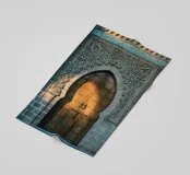 Tramonto su una facciata in Marocco. La luce del sole su una porta tradizionale in legno in Marocco. Arte, design e architettura marocchina a Meknes.