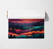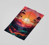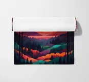 A vibrant and captivating landscape painting depicting a breathtaking sunset over a majestic mountain range. The scene is filled with rich colors and intricate details, creating a truly mesmerizing artwork.