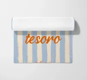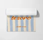 "Tesoro" significa tesoro - in italiano e in spagnolo. Questo design combina una calda tipografia con un morbido sfondo a righe e l'aggiunta ironica "studio scusi". Ideale per le anime creative, gli amanti del design e dell'estetica mediterranea.