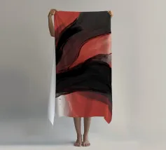 Audaci schizzi di vernice nera e rossa coprono una superficie scura, creando un disegno astratto. I colori contrastanti enfatizzano la consistenza e la profondità, esaltando l'espressione artistica.