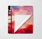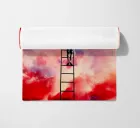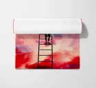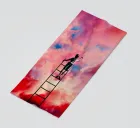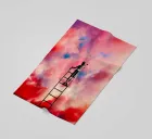 Elevate your space with the Cloud Painter artwork, featuring a whimsical scene of a child atop a ladder, immersed in the act of creating or altering the vibrant clouds in the sky. This design captures the essence of creativity and the limitless bounds of imagination. It's a perfect enhancement for an artist's studio, children's room, or any area where inspiration and dreamlike wonder are desired. Each brushstroke in the sky blends hues of pink, red, and blue, crafting a colorful canopy that breathes life and movement into your room.