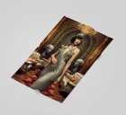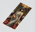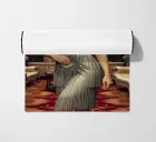 This image showcases a glamorous flapper girl surrounded by opulent metallic accents, lavish furnishings, and ornate decor, blending futuristic and Art Deco elements with organic curves and dreamy surrealism.