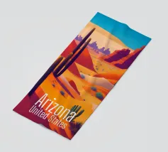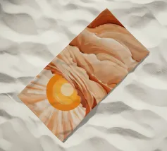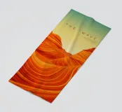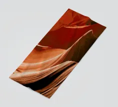 Disegno di viaggio minimalista e decorativo con "The Wave", la colorata formazione rocciosa sulle pendici del Coyote Buttes in Arizona, USA. Un disegno per le vacanze estive per tutti coloro che amano andare in vacanza nei parchi nazionali degli Stati Uniti e trovano bella questa natura e il paesaggio rossastro.