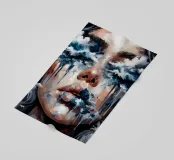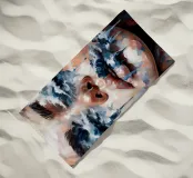 Portrait painting of a woman with waves crashing over her face.