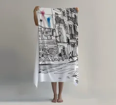 Stampa di un disegno originale di Plaça de la Virreina nel quartiere Gràcia di Barcellona.