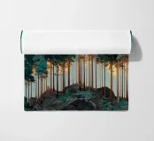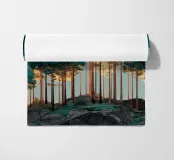 A dreamlike landscape where colour, light, and form converge in quiet harmony. Slender tree trunks rise from a rocky outcrop, supporting a dense canopy of softly shifting tones that glow from within. The light filtering through the forest creates a sense of warmth and elevation, transforming the scene into something both natural and otherworldly.
