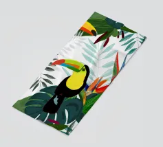 Questo elegante collage vintage è incentrato su un sorprendente tucano, il cui becco vibrante e le piume nere e lucide spiccano sul lussureggiante fogliame tropicale. Intorno al tucano si librano con grazia delicati colibrì, le cui ali iridescenti brillano nelle tonalità del blu e del verde. L'interazione tra l'audace presenza del tucano e il movimento leggero ed etereo dei colibrì crea una scena dinamica e armoniosa. Lo sfondo, con le sue sottili texture vintage, aggiunge profondità e un fascino nostalgico, mentre la ricca vegetazione e i colori vivaci evocano la bellezza di un paradiso esotico.