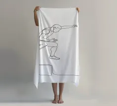 Una line art minimalista di un tuffatore in movimento, che cattura la grazia, la precisione e il movimento fluido. Perfetto per gli amanti dello sport e delle decorazioni a tema acquatico.