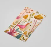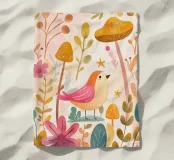 Un dolce uccellino rosa si trova tra funghi dorati e fiori soffici in questo giardino boho da sogno. Dipinta in calde tonalità di acquerello, l'opera d'arte fonde la dolcezza del capriccio e la calma della natura, perfetta per le pareti di asili nido, salotti accoglienti o per chiunque ami il fascino morbido e moderno delle fiabe. Portate un tocco di magia e serenità nel vostro spazio con questa stampa pastello del bosco.