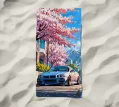 Un'auto retrò in fiore di ciliegio Lofi Art